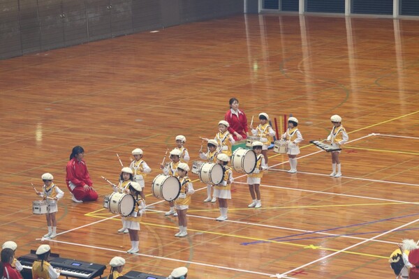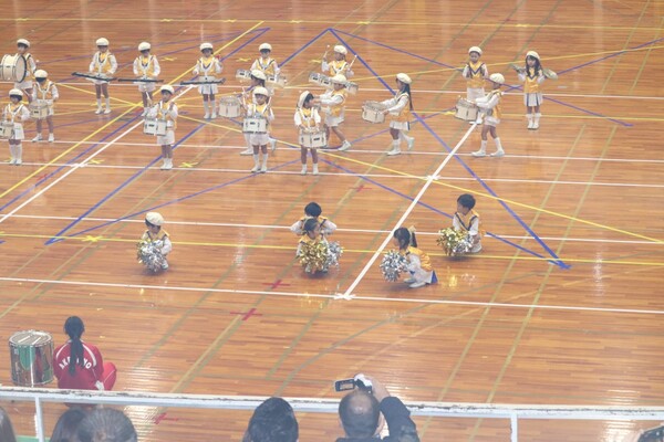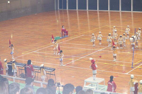 運動会でも披露した鼓笛隊をしました。あけぼの保育園のほかにも3つのこども園が参加されとても多くの人たちが観覧にこられてました。